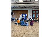 Großrunde, beim Morgengebet und in Gruppenstunde für die Kommunionkinder, beim