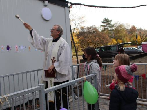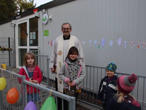 Am Freitag, 29. Oktober 2021, war es endlich soweit, der Interimskindergarten St. Peter und Paul konnte im Kreise der Familien und Mitarbeiterinnen des Kindergartens feierlich eingeweiht werden. Pfarrer Klaus Nentwich segnete das neue Gebäude in der Wilhelm-Röpke-Straße 4A, welches für die nächsten zwei Jahre die zweite Heimat von 40 Kindern sein wird. Der alte Kindergarten der Gemeinde St. Peter und Paul in der Biegenstraße wird abgerissen und im Zuge des Neubaus auf drei Gruppen vergrößert.